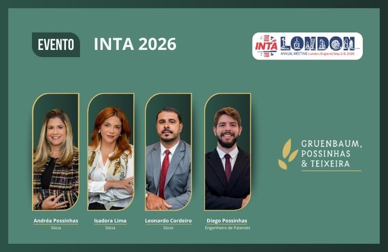 Nossos sócios, Andréa Possinhas e Isadora Lima (Departamento Jurídico e de Marcas), Leonardo Cordeiro (Departamento de Patentes), e o Engenheiro de Patentes, Diego Possinhas, representarão nosso escritório na Reunião Anual de 2026 da International Trademark Association (INTA), que acontecerá em Londres, de 2 a 6 de maio de 2026.